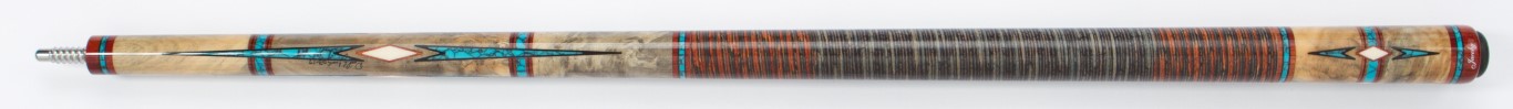 Butt Sleeve Wood: Birdseye MapleForearm Inlays: 4 Large Turquoise Spear Head Inlays and 4 Small Elforyn Spear Head Inlays with Black Borders