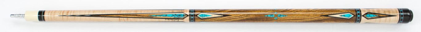 Butt Sleeve Wood: Tigerstripe MapleForearm Inlays: 5 Leopardwood Points with Asain Turquoise Inlays
